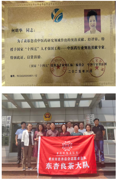 In 2007, He Minghua supported the Hope Project and cared for faculty and staff, donating "Dongxing Liangcha" and "Dongxing Yuzubao" to the education commissions of various districts and counties in Chongqing. At the same time, He Minghua stepped onto the podium and was invited to deliver speeches at Peking University, Zhejiang University, Shanghai Jiao Tong University, Dongbei University of Finance and Economics, Diaoyutai State Guesthouse, and the Great Hall of the People, sharing her entrepreneurial philosophy of health for the people and promoting it as motivational education nationwide and worldwide. After years of dedication to public welfare, He Minghua was awarded the title of National Model of Public Welfare in 2009; she was also listed among the advanced collectives and outstanding volunteers at the commendation conference held by the Chongqing Charity Federation. Ma Faxiang, a member of the Standing Committee of the Chongqing Municipal Committee of the Chinese People's Political Consultative Conference and former director of the Municipal Bureau of Small and Medium Enterprises, highly praised her after learning about her long-term commitment to charity and public welfare. Zhou, deputy director of the Volunteer Corps Office of the Chongqing Charity Federation, commented that Chairman He Minghua is not only a doer but also a philanthropist.
